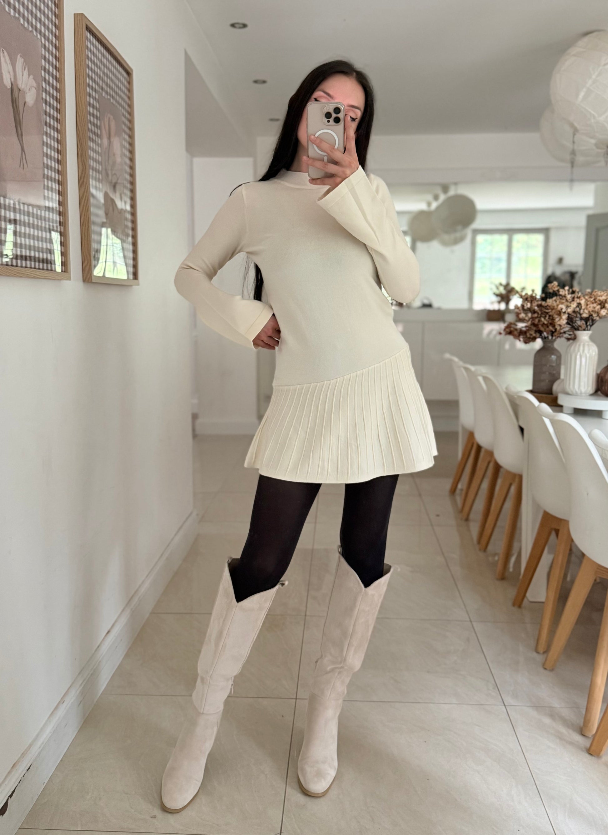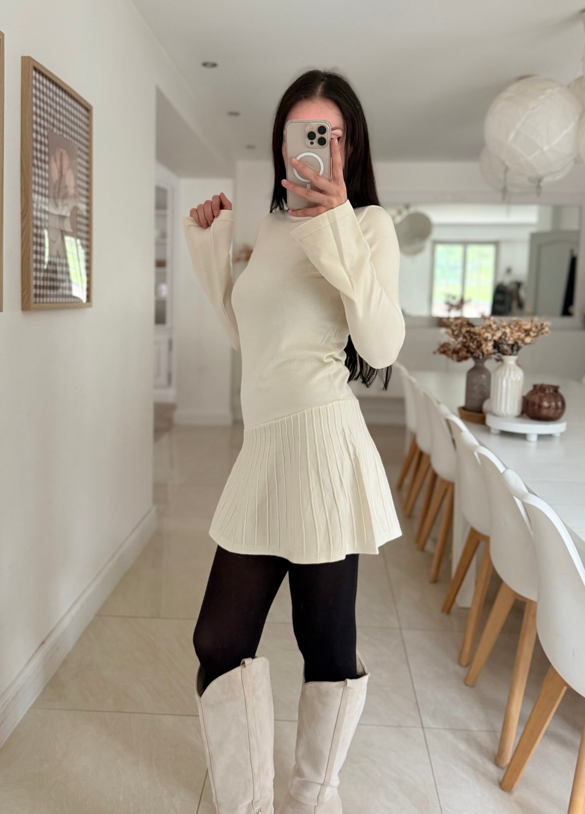 Robe en maille, coupe évasée avec encolure ronde et manches évasées.
